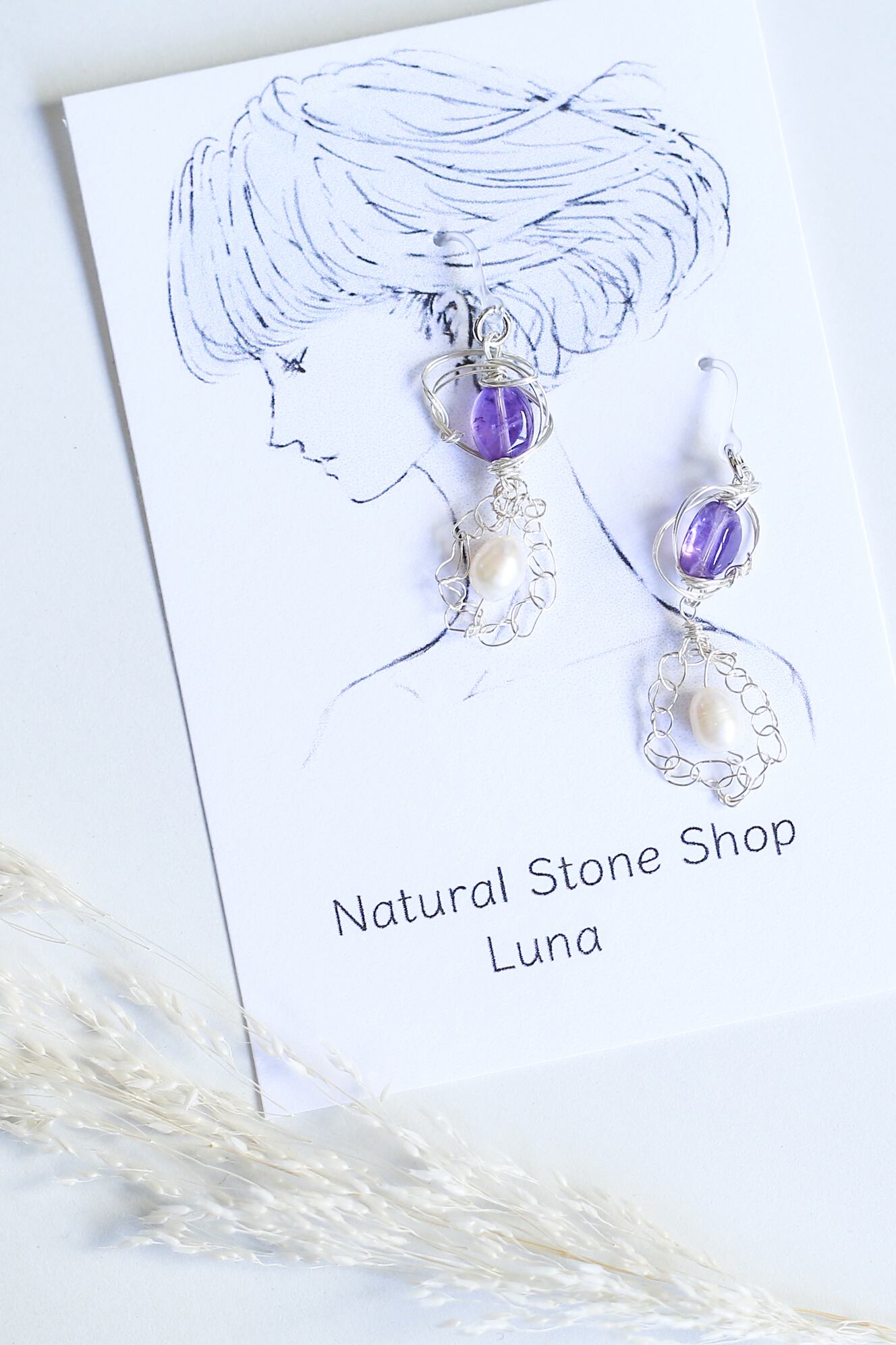 天然石をワイヤーアートしたピアスです。
